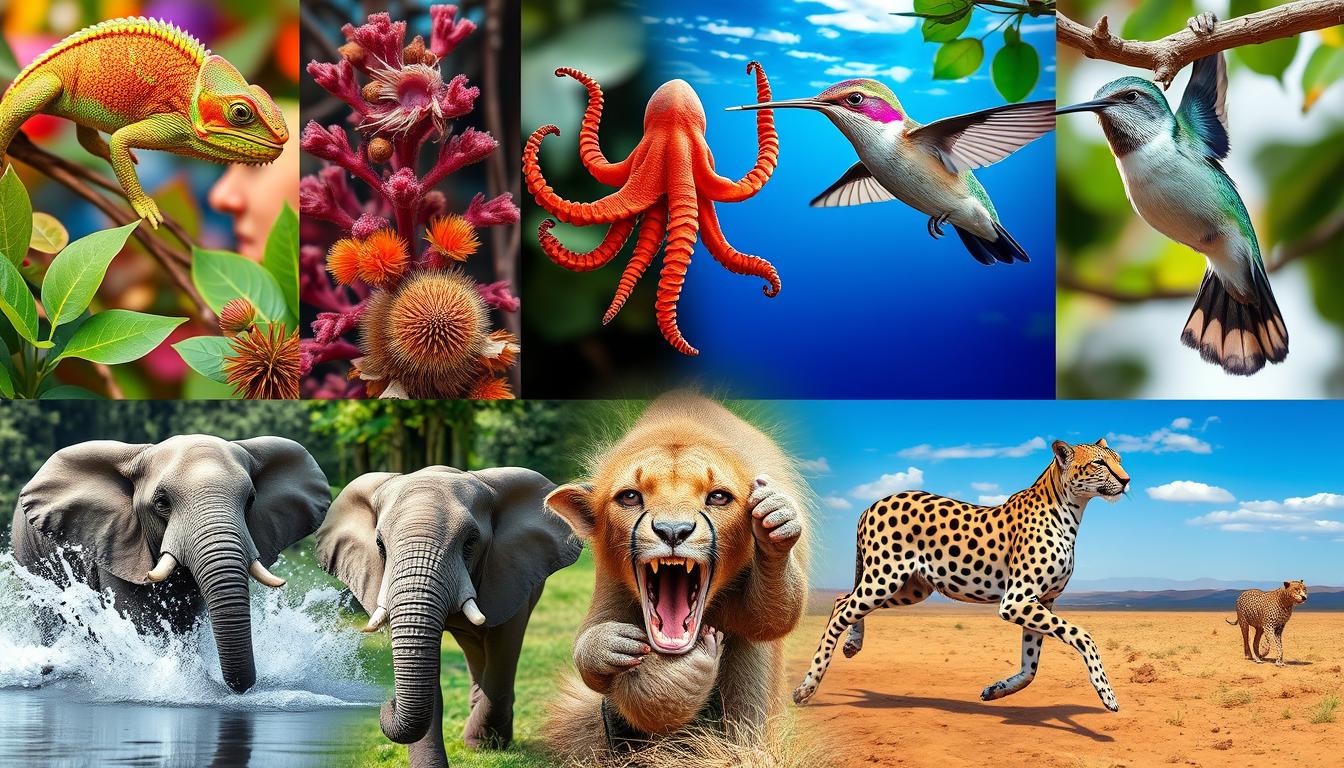 The natural world is full of amazing animals. Each one has special physical skills that amaze us. From hummingbirds flying to geckos climbing, nature shows us incredible adaptations.