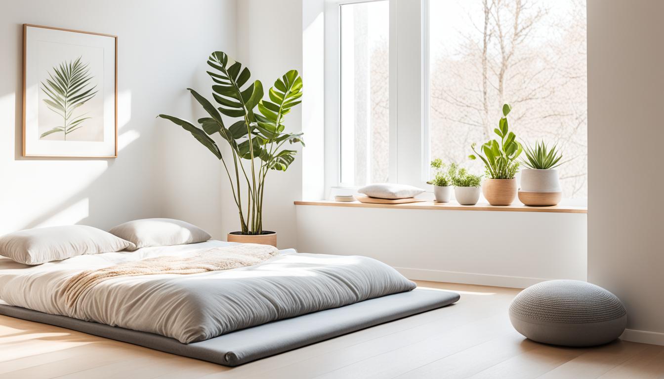Start making your home a peaceful place by decluttering and simplifying it. A minimalist lifestyle helps clear out the visual noise, bringing calmness. Decluttering lowers stress and lets you focus on what’s truly important. This makes room for natural elements that turn your home into a peaceful retreat.